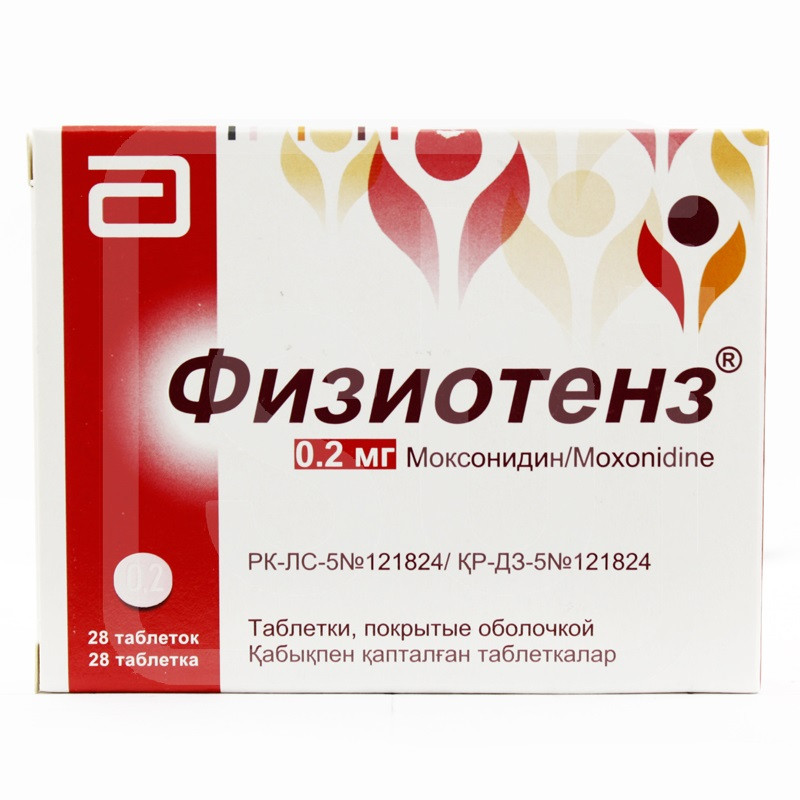 Круглые двояковыпуклые покрытые оболочкой, таблетки. Таблетки с дозировкой 0,2 мг — бледно-розового цвета с маркировкой «0,2» с одной стороны. Таблетки с дозировкой 0,3 мг — бледно-красные с маркировкой «0,3» с одной стороны. Таблетки с дозировкой 0,4 мг — матово-красного цвета с маркировкой «0,4» с одной стороны. На поперечном срезе видны два слоя. | Состав+Одна таблетка содержит — моксонидин 0,2 мг, или 0,3 мг, или 0,4 мг | Противопоказания+повышенная чувствительность к компонентам препаратасиндром слабости синусового узла, или брадикардия (частота пульса в покое меньше, чем 50 ударов в минуту), нарушения внутрисердечной проводимости, тяжелые аритмиидетский и подростковый возраст до 18 лет (эффективность и безопасность не установлены)беременность и период лактации | Побочные действия+головокружение, головная боль, общая слабость, сонливость, нарушение сна, повышенная утомляемостьчрезмерное снижение АД, ортостатическая гипотензиясухость во рту, тошнотаангионевротический отек, периферические отёки | Способ применения+Внутрь.В большинстве случаев начальная доза Физиотенза составляет 0,2 мг в сутки; максимальная суточная доза, которую следует разделить на 2 приема, составляет 0,6 мг. Максимальная однократная доза составляет 0,4 мг.Начальная суточная доза для пациентов с почечной недостаточностью (КК 30-60 мл/мин) и пациентов, находящихся на гемодиализе — 0,2 мг. Максимальная суточная доза — 0,4 мг. | Показания к применению+артериальная гипертензия | МНН: МоксонидинОбъем: 0.2 мгАртикул: A02-0003923