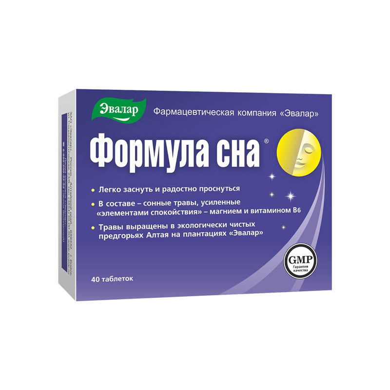 Состав+Магния карбонат 224 мкг, в том числе магний 54 мг.Эшшольции экстракт200 мг.Пустырника экстракт 160 мг., в том числе иридоиды 8 мг.Хмеля экстракт80 мг.Витамин B6 2 мг.Тиамин (витамин B1)1,5 мг.Витамин B12 3 мкг. | Противопоказания+Лицам с индивидуальной непереносимостью компонентов продукта, беременным, кормящим грудью. | Способ применения+Взрослым и детям старше 14 лет по 2 таблетки за 30 минут до сна. Продолжительность приёма не менее 20 дней. При нарушениях сна прием можно повторять 3–4 раза в год. | Показания к применению+Снятие эмоционального напряжения;облегчение наступления сна;улучшение качества сна и его продолжительности. | Объем: ТаблеткиАртикул: A02-0000617