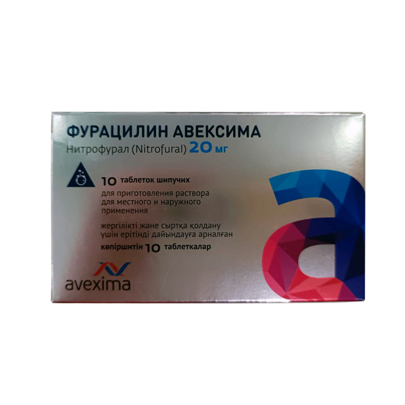 Круглые, плоскоцилиндрической формы таблетки, от светло-желтого до желтого цвета с вкраплениями, с фаской на обеих сторонах. Допускается шероховатость поверхности таблетки. | Состав+Одна таблетка содержитнитрофурал (фурацилин) 20 мг | Противопоказания+Повышенная чувствительность к нитрофуралу, производным нитрофурана и/или другим компонентам препаратааллергодерматозыкровотечениявыраженные нарушения функции почек | Побочные действия+Побочные реакции, встречавшиеся чаще, чем в единичных случаях, перечислены в соответствии со следующей градацией: очень часто (больше или равно 1 / 10);часто (от больше или равно 1 / 100 до ‹1/10); нечасто (больше или равно 1 / 1000 до ‹1/100); редко (от больше или равно 1 /10000 до ‹1/1000); очень редко (‹1/10000), частота неизвестна (невозможно оценить частоту появления реакций по имеющимся данным).частота неизвестна: аллергические реакции: кожный зуд, дерматит. | Способ применения+Местно, наружно в виде 0,02 % свежеприготовленного водного раствора: непосредственно перед применением одну таблетку (20 мг фурацилина), растворяют в 100 мл дистиллированной воды комнатной температуры или в теплой кипяченой воде.Наружно: в виде водного 0,02% раствора — орошают раны, накладывают влажные повязки.Местно: блефарит, конъюнктивит — инстилляция водного 0,02% раствора в конъюнктивальный мешок. Остеомиелит после операции — промывание полости, с последующим наложением влажной повязки. Эмпиема придаточных пазух носа (в том числе при гайморите) — промывание полости, эмпиема плевры — после удаления гноя проводят промывание плевральной полости и вводят 20-100 мл водного 0,02% раствора. Для промывания мочеиспускательного канала и мочевого пузыря применяют водный 0,02% раствор с экспозицией 20 минут.При тонзиллите, стоматите, гингивите — полоскание рта и горла по 100 мл водного 0,02% раствора 2-3 раза в день.Продолжительность лечения — по показаниям в зависимости от характера и локализации пораженного участка. Если симптомы сохраняются, рекомендуется обратиться к врачу.Применяйте препарат только согласно тому способу применения и в тех дозах, которые указаны в инструкции. В случае необходимости, пожалуйста, проконсультируйтесь с врачом перед применением лекарственного препарата. | Показания к применению+В составе комплексной терапии:местно: острый тонзиллит (ангина), стоматит, гингивит, блефарит, конъюнктивит, остеомиелит, эмпиема придаточных пазух носа и плевры; инфекции мочевыводящих путей — промывание полостей.наружно: гнойные раны, пролежни, язвы, ожоги II-III степени, мелкие повреждения кожи (в том числе ссадины, царапины, трещины, порезы). | МНН: НитрофуралОбъем: 20 МиллиграммАртикул: A01-0019726
