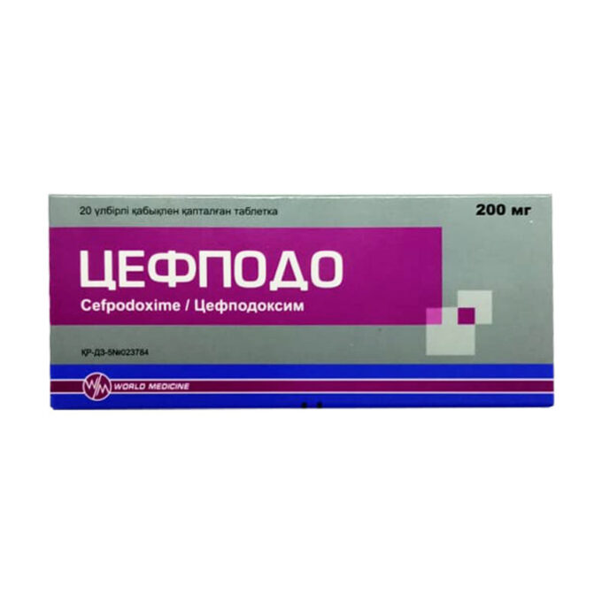 Таблетки круглой формы, с двояковыпуклой поверхностью, покрытые пленочной оболочкой белого цвета, с риской на одной стороне. | Состав+Одна таблетка содержитцефподоксим (в виде цефподоксима проксетила 260,88 мг) 200 мг | Противопоказания+- Непереносимость к цефподоксиму и другим компонентам препарата;- аллергические реакции (анафилаксии) к пенициллину или другимбета-лактамным антибиотикам;- период лактации;- лицам с наследственной непереносимостью фруктозы, дефицитом фермента Lapp-лактазы, мальабсорбцией глюкозы-галактозы | Побочные действия+Использованные ниже параметры частоты побочных эффектов определены следующим образом: часто (от больше или равно 1/100 до ‹ 1/10), нечасто (от больше или равно 1/1000 до ‹ 1/100), редко (от больше или равно 1/10000 до ‹ 1/1000), неуточненной частоты — параметры частоты не могут быть оценены по имеющимся данным.Со стороны пищеварительной системы: часто — тошнота, персистирующая диарея; нечасто — рвота, боль в животе; неуточненной частоты — псевдомембранозный колит, задержка стула, гастрит, дисбактериоз (рост Clostridium difficile), слюнотечение, метеоризм, снижение аппетита.Со стороны нервной системы: нечасто — головокружение, головные боли, повышенная утомляемость; неуточненной частоты — раздражительность, бессонница, «кошмарные» сновидения.Со стороны дыхательной системы: неуточненной частоты — кашель.Со стороны сердечно-сосудистой системы: неуточненной частоты — снижение артериального давления.Со стороны органов кроветворения: редко — тромбоцитопения; неуточненной частоты — нейтропения, тромбоцитоз, лейкоцитоз, лейкопения, лимфоцитоз, гранулоцитоз, базофилия, моноцитоз, лимфоцитопения, носовое кровотечение.Со стороны мочеполовой системы: неуточненной частоты — нарушение менструального цикла.Со стороны иммунной системы: нечасто — кожная сыпь, крапивница; неуточненной частоты — зуд, эозинофилия, ангионевротический отек, лихорадка, анафилактический шок.Лабораторные показатели: редко — гипербилирубинемия; неуточненной частоты — повышение активности «печеночных» трансаминаз и щелочной фосфатазы, лактатдегидрогеназы, гамма-глутамилтрансферазы, повышение концентрации мочевины, креатинина, гипер- или гипогликемия, гипопротеинемия и гипоальбуминемия, снижение гемоглобина, положительная реакция Кумбса, увеличение протромбинового времени.Прочие: редко — слабость; неуточненной частоты — боль в груди, повышенное потоотделение. | Способ применения+ЦЕФПОДО показан для приема внутрь во время еды.В следующей таблице представлены рекомендованные дозы, длительность лечения, контингент пациентов (от 12 лет и старше), кроме других указаний врача:Взрослые и подростки от 12 лет и старшеИнфекция Общая Режим Длительностьсуточная доза дозирования леченияИнфекции верхних Синусит: 400 мг Синусит: по 200 мг 5-10 днейдыхательных путей, Другие инфекции через каждыевызванных Streptococcus верхних дыха 12 часовpneumoniae, Streptococcus тельных Другие инфекцииpyogenes, Haemophilus путей: 200 мг верхних дыха-influenzae или Moraxella тельных путей:(Branhamella) catarrhalis, по 100 мг (1/2 таб-включая синусит, летки) черезтонзиллит и фарингит каждые 12 часовВнебольничная 400 мг по 200 мг через 14 днейпневмония, вызванная каждые 12 часовS. pneumoniae илиH. influenzaeОбострение хронического 400 мг по 200 мг через 10 днейбактериального бронхита, каждые 12 часоввызванное S. pneumoniae,H. influenzae илиM. catarrhalisДля паци