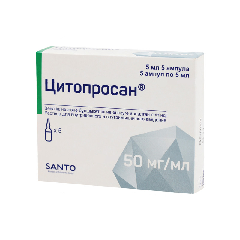 Прозрачный, бесцветный или слегка желтоватый раствор | Состав+1 мл раствора содержитэтилметилгидроксипиридина сукцинат(в пересчете на безводное вещество) 50.0 мг | Противопоказания+Повышенная индивидуальная чувствительность к препаратуострые нарушения функции печени и почекдетский и подростковый возраст до 18 летбеременность, период лактации | Побочные действия+Тошнота и сухость во рту, металлический привкус во ртусонливостьаллергические реакциинеприятный запах, першение в горле и дискомфорт в грудной клетке | Способ применения+Внутримышечно или внутривенно (струйно или капельно).При инфузионном способе введения Цитопросана® следует разводить в 0,9 % растворе натрия хлорида. Струйно Цитопросан® вводят медленно в течение 5 — 7 мин, капельно — со скоростью 40 — 60 капель в минуту. Максимальная суточная доза не должна превышать 1200 мг.При острых нарушениях мозгового кровообращенияЦитопросан® применяют в первые 10 — 14 дней — внутривенно капельно по 200 — 500 мг 2 — 4 раза в сутки, затем внутримышечно по 200 — 250 мг 2 — 3 раза в сутки в течение 2 недель.При черепно-мозговой травме и последствиях черепно-мозговых травм Цитопросан® применяют в течение 10 — 15 дней внутривенно капельно по 200 — 500 мг 2 — 4 раза в сутки.При дисциркуляторной энцефалопатии в фазе декомпенсации Цитопросан® следует назначать внутривенно струйно или капельно в дозе 200 — 500 мг 1 — 2 раза в сутки на протяжении 14 дней. Затем внутримышечно по 100 — 250 мг в сутки на протяжении последующих 2 недель.Для курсовой профилактики дисциркуляторной энцефалопатии Цитопросан® вводят внутримышечно в дозе 200 — 250 мг 2 раза в сутки на протяжении 10 — 14 дней.При легких когнитивных нарушениях у больных пожилого возраста и при тревожных расстройствахЦитопросан® применяют внутримышечно в суточной дозе 100 — 300 мг в сутки на протяжении 14 — 30 дней.При остром инфаркте миокарда в составе комплексной терапии Цитопросан® вводят внутривенно или внутримышечно в течение 14 суток, на фоне традиционной терапии инфаркта миокарда, включающей нитраты, бета-адреноблокаторы, ингибиторы ангиотензинпревращающего фермента (АПФ), тромболитики, антикоагулянтные и антиагрегантные средства, а также симптоматические средства по показаниям.В первые 5 суток, для достижения максимального эффекта, Цитопросан® желательно вводить внутривенно, последующие 9 суток Цитопросан® может вводиться внутримышечно.Внутривенное введение Цитопросана® производят путем капельной инфузии, медленно (во избежание побочных эффектов) на 0,9 % растворе натрия хлорида или 5 % растворе декстрозы (глюкозы) в объеме 100 — 150 мл в течение 30 — 90 мин. При необходимости возможно медленное струйное введение Цитопросан®, продолжительностью не менее 5 минут.Введение Цитопросана® (внутривенное или внутримышечное) осуществляют 3 раза в сутки, через каждые 8 часов. Суточная терапевтическая доза составляет 6 — 9 мг на кг массы тела в сутки, разовая доза — 2 — 3 мг на кг массы тела. Максимальная суточная доза не должна превышать 800 мг, разовая — 250 мг.При открытоугольной глаукоме различных стадий в составе комплексной терапииЦитопросан® вводят внутримышечно по 100 — 300 мг в сутки, 1 — 3 раза в сутки в течение 14 дней.При абстинентном алкогольном синдромеЦитопросан® вводят в дозе 200 — 500 мг внутривенно капельно или внутримышечно 2 — 3 раза в сутки в течение 5 — 7 