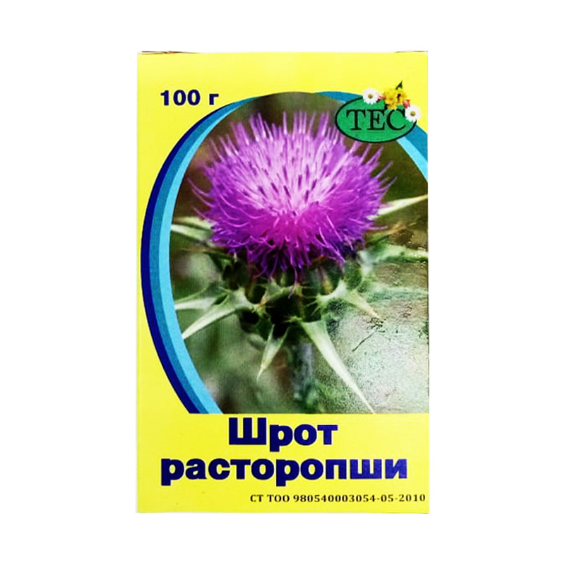 Состав+Шрот расторопши пятнистой 100 грамм | Противопоказания+Индивидуальная непереносимость компонентов продукции, беременность, кормление грудью, дети до 14 лет. Беречь от детей. Не применять по истечении срока годности | Способ применения+Принимать по 1 чайной ложке шрота 2-3 раза в день за полчаса до еды, запивая достаточным количеством жидкости | Показания к применению+Шрот расторопши пятнистой содержит широкий спектр биологически активных веществ, это : флавоноиды и флавонолигнаны, клетчатка, витамины группы В, витамины К и F, биогенные амины, макро и микро элементы. Шрот расторопши рекомендуется применять в качестве биологически активной добавки к пище для поддержания функционального состояния органов пищеварительной системы, оказывает общеукрепляющее действие на организм, способствует нормализации обмена веществ и выведению шлаков и токсинов. | Объем: