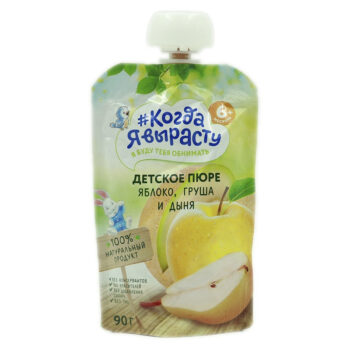 Пюре детское Когда я вырасту яблоко, груша, дыня без сахара 90г с 6мес